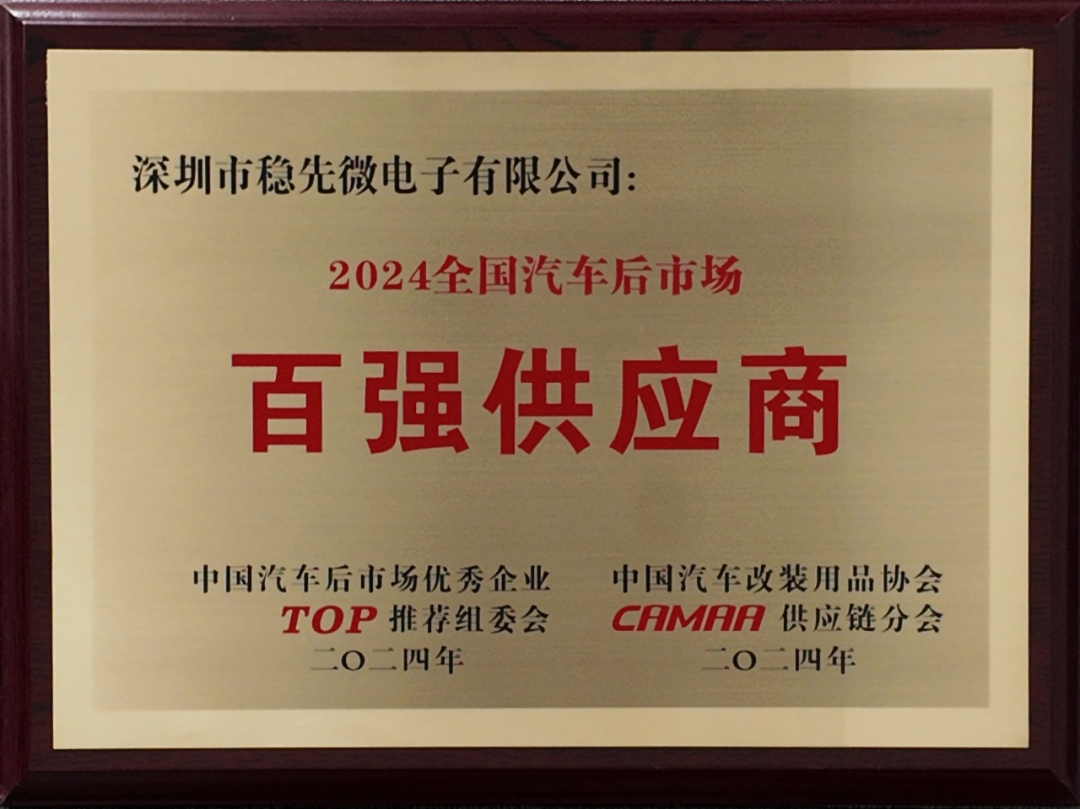 喜報(bào) | 熱烈祝賀穩(wěn)先微榮獲“2024全國(guó)汽車(chē)后市場(chǎng)百?gòu)?qiáng)供應(yīng)商”